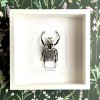 Brouk pochází z tropických oblastí střední Afriky a je ceněn pro svou velikost, pevnost i eleganci. Díky pečlivé preparaci a preciznímu umístění do rámu se Goliathus meleagris stává výjimečnou přírodní dekorací, která v interiéru působí noblesně a harmonicky.
