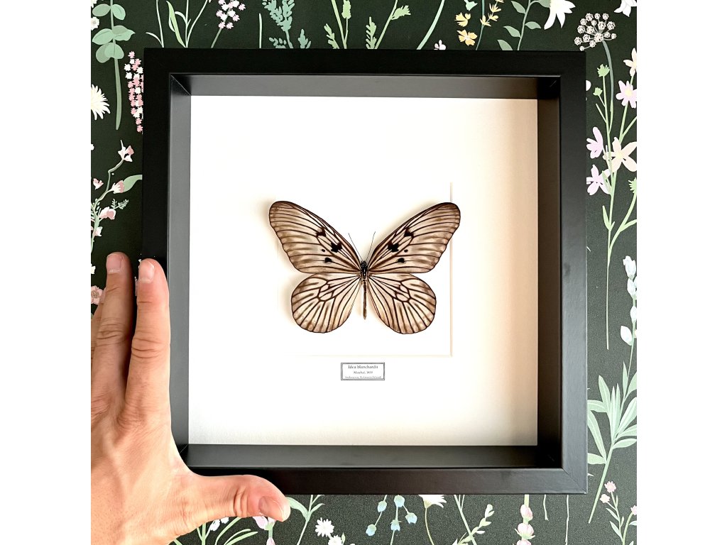 Zarámovaný motýl Idea blanchardi je jemným a elegantním doplňkem pro každého, kdo miluje přírodu a umění. Tento motýl pochází jedině z ostrova Sulawesi v Indonésii. Jeho křídla se vyznačují působivou kombinací černých a bílých vzorů, které působí étericky a dodávají prostoru lehkost a sofistikovaný styl. Pečlivé rámování zaručuje, že tento skvost přírody se stane výjimečným prvkem vaší sbírky nebo interiéru.