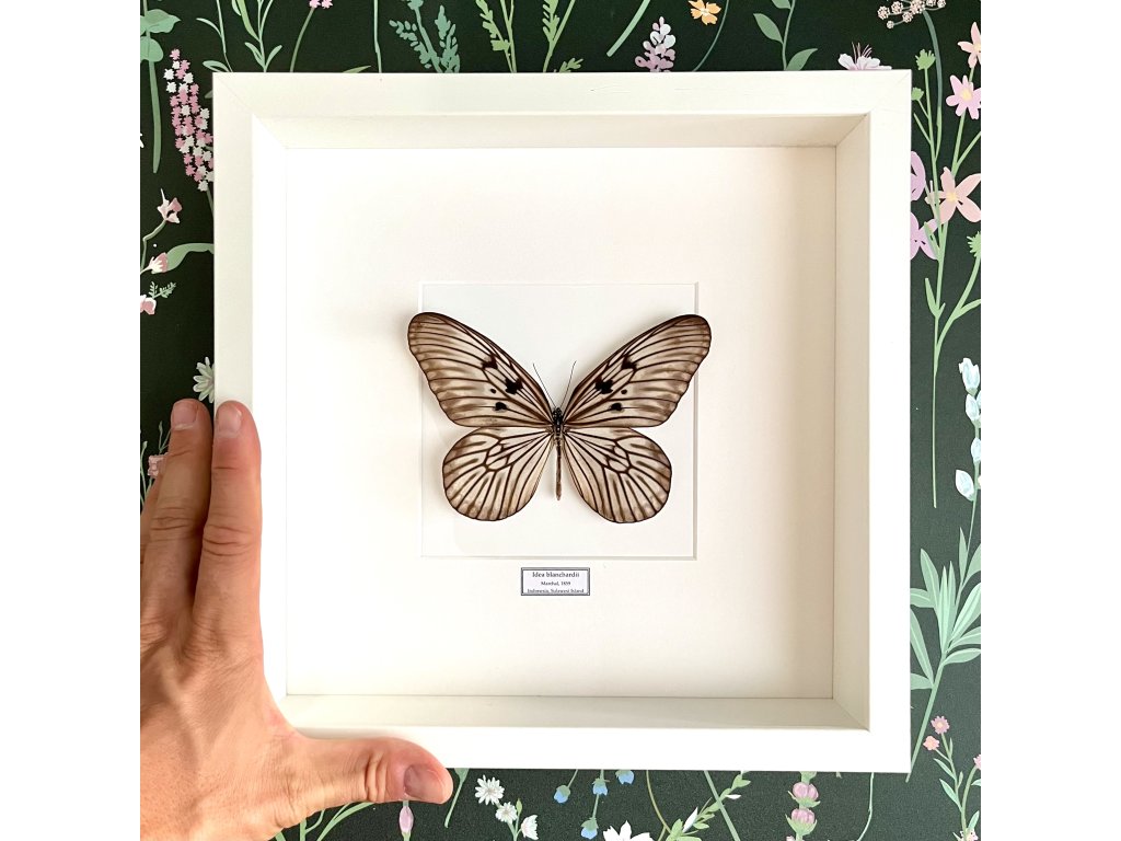 Idea blanchardi – jemný motýl s průsvitnými křídly v elegantním rámu