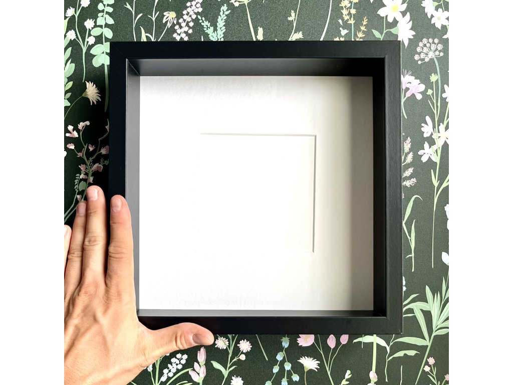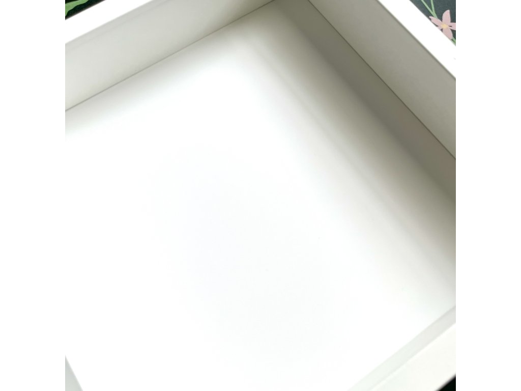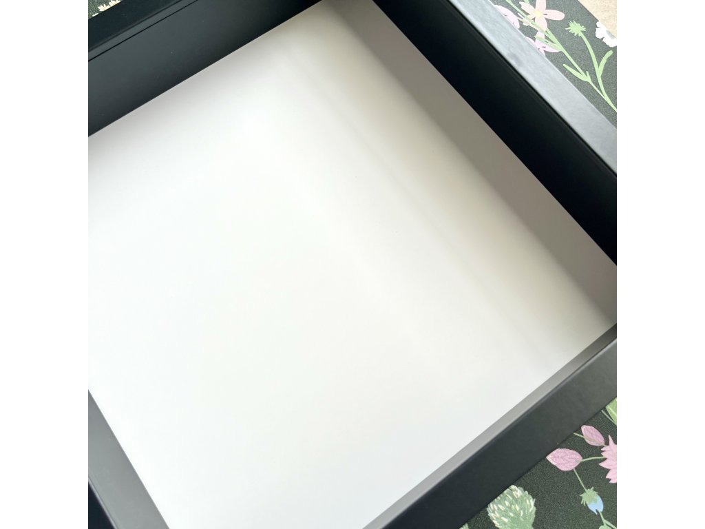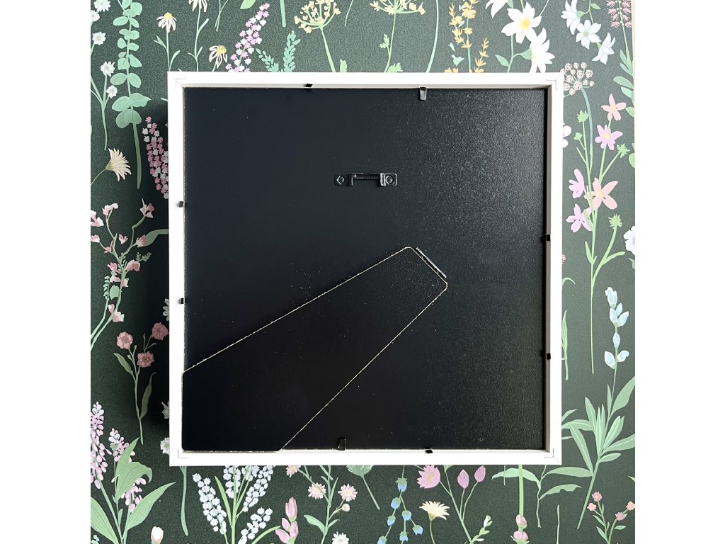 Na výběr je také varianta s papírovou paspartou – dekorativním lemem po obvodu pozadí. Zadní část rámu se snadno otevírá, což umožňuje jednoduché umístění a fixaci preparátu.