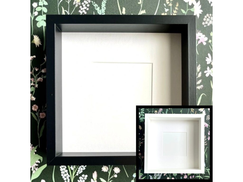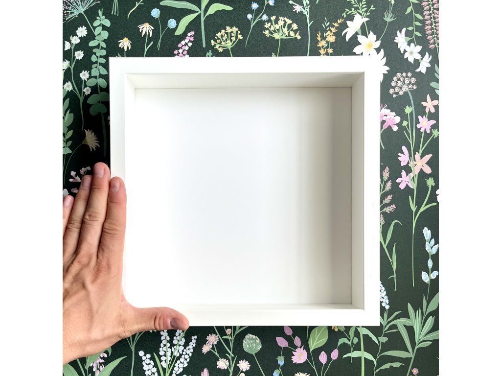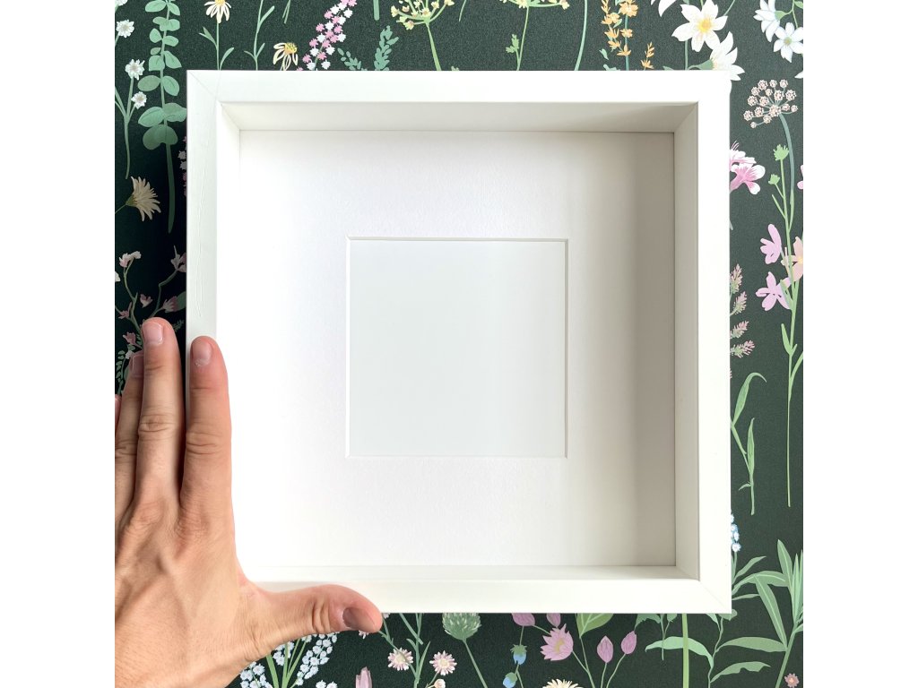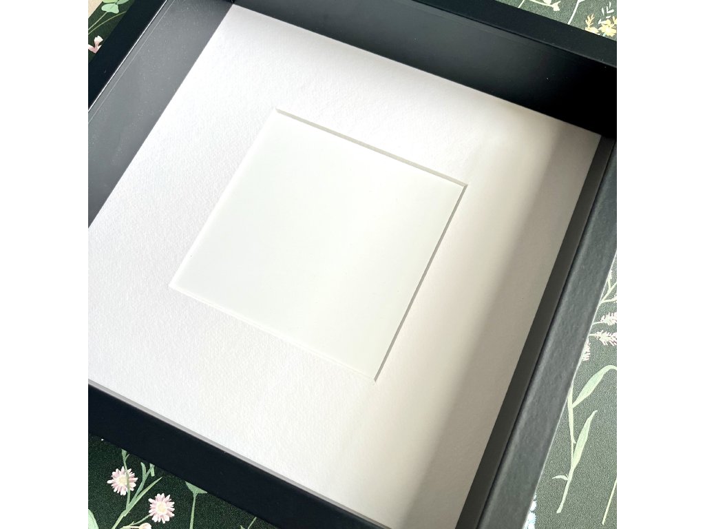 Na výběr je také varianta s papírovou paspartou – dekorativním lemem po obvodu pozadí. Zadní část rámu se snadno otevírá, což umožňuje jednoduché umístění a fixaci preparátu.